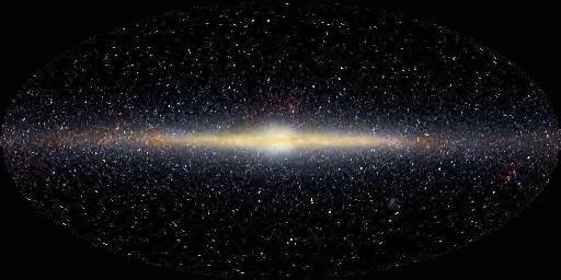 The Sun is one of the 200 billion stars of our galaxy, which is also known as the Milky Way. A galaxy is a group of stars scattered billions and billions of miles away from each other. All these stars in the Galaxy orbits the center. Our Sun takes about 250 million years to complete one orbit. Our galaxy is spiral shaped with central bulge, called the nucleus, and a thin disk which has two spiral arms in it. The Sun with its whole solar system lies in one of the spiral arms some 30,000 light years from the center - about two third from the center to the edge of the galaxy. A light year is the distance that light travels in a year at a speed of 186,000 miles per second; that is about 6 trillion miles per one light year. Light would take about 100,000 years to cross the galaxy.